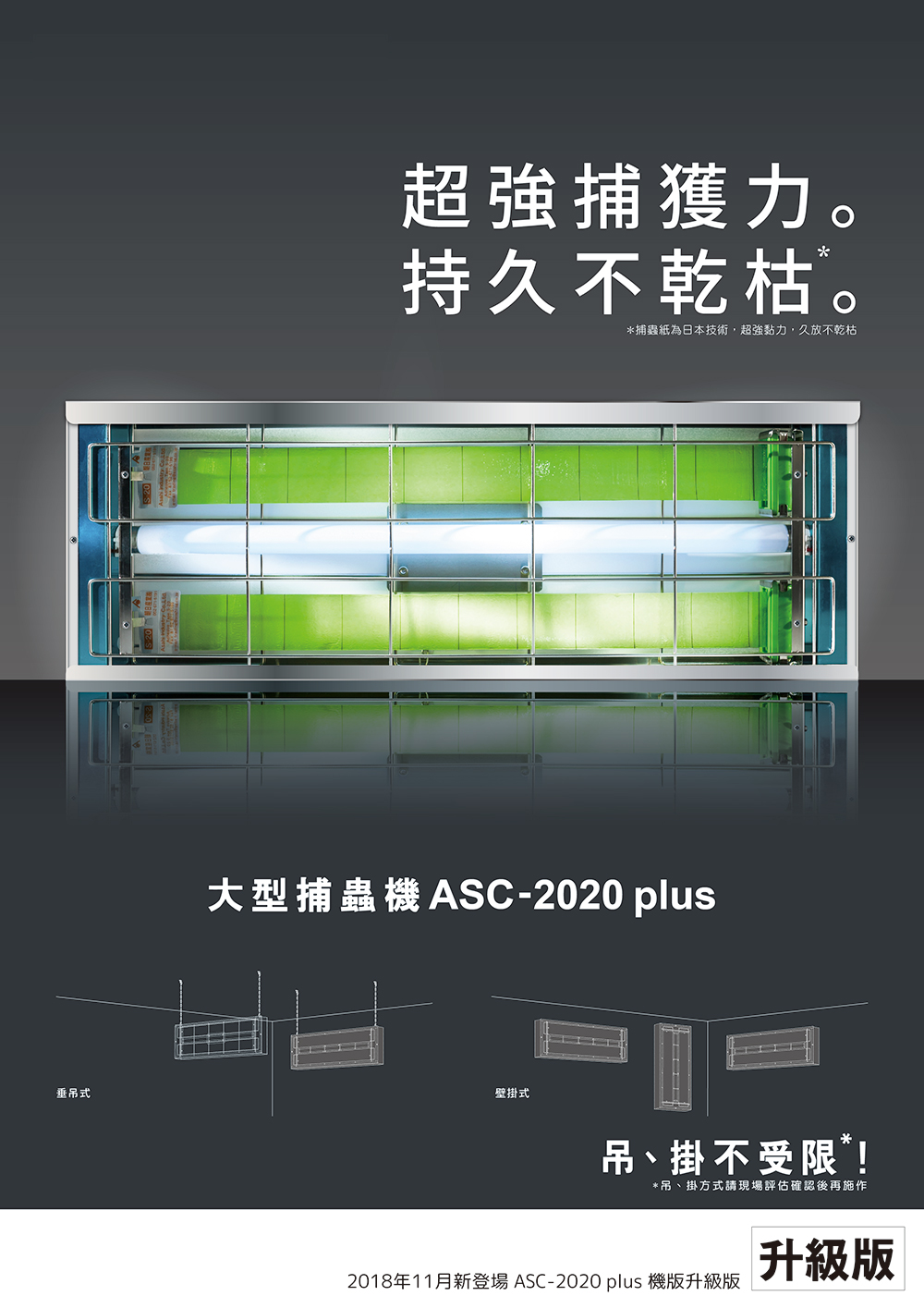備註:ASC-2020 PLUS專業捕蟲燈不會有一般電擊式捕蟲燈所造成的二次汙染困擾