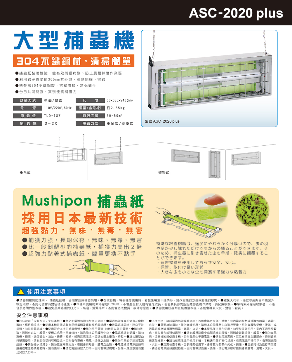 專業捕蟲燈/專業捕蟲機 ASC-2020 PLUS 規格諸元