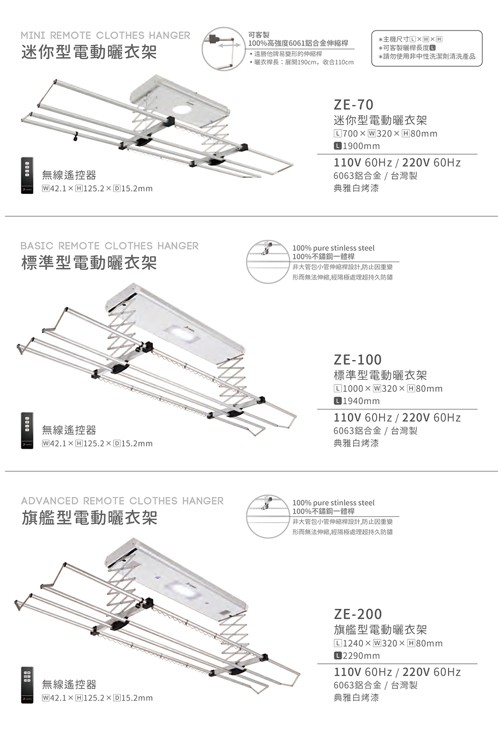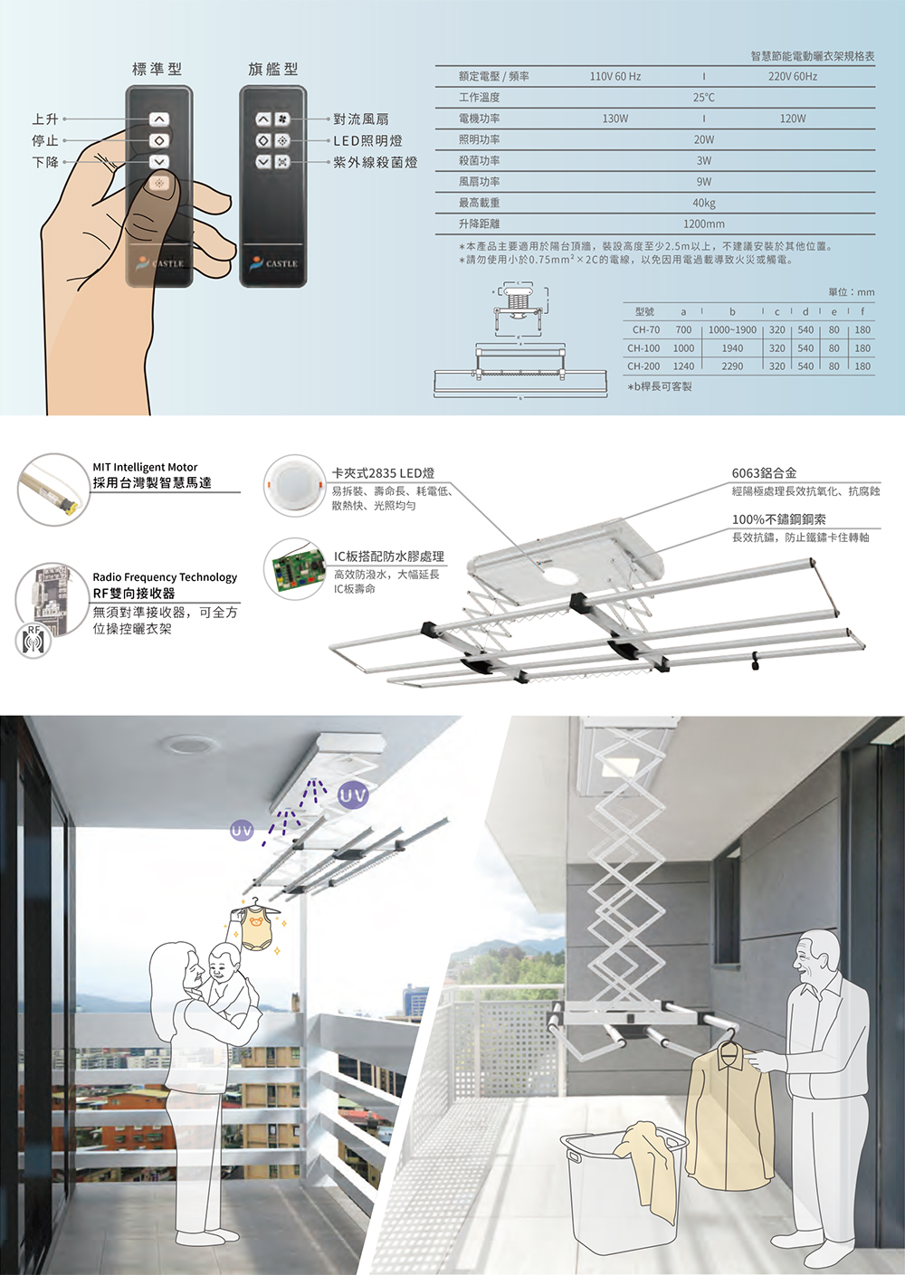 CASTLE 電動曬衣架/電動晒衣架 六大設計