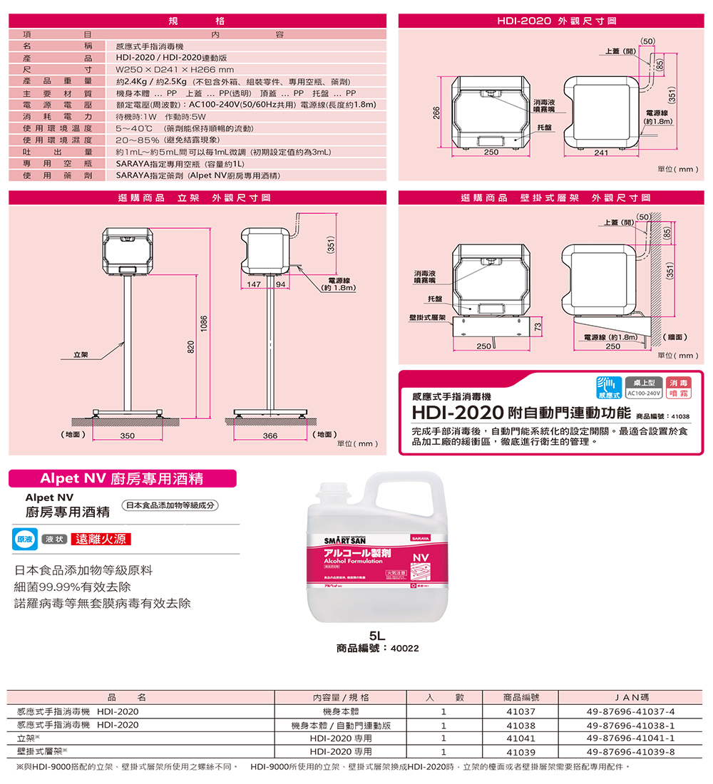 ※HDI-2020 自動手指消毒機/自動手部消毒機