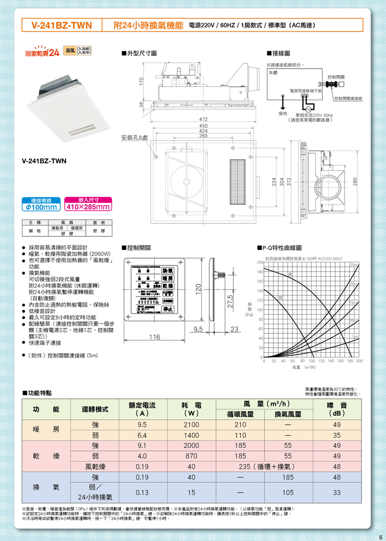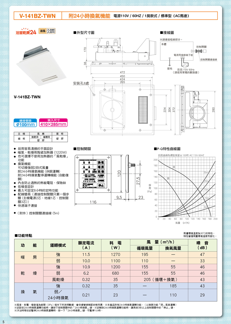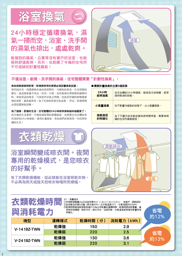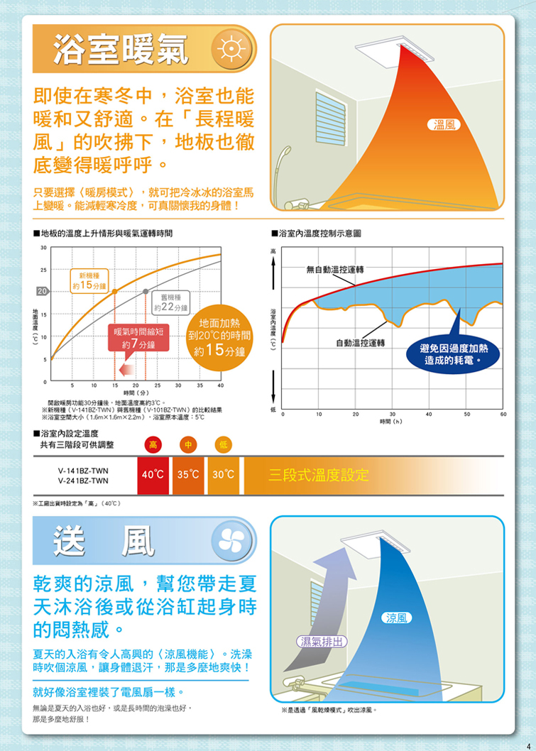 三菱浴室暖風機V-141BZ-TWN(110V)與V-241BZ-TWN(220V)各項功能說明