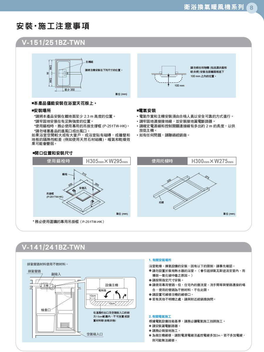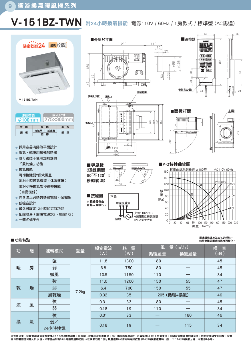 三菱無線遙控浴室暖風機 V-151BZ-TWN(110V)V-251BZ-TWN(220V)