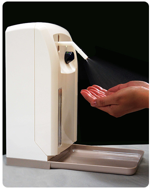 機器會依您的需求,自動偵測使用者的手並噴出皂液或消毒液1次或2次。